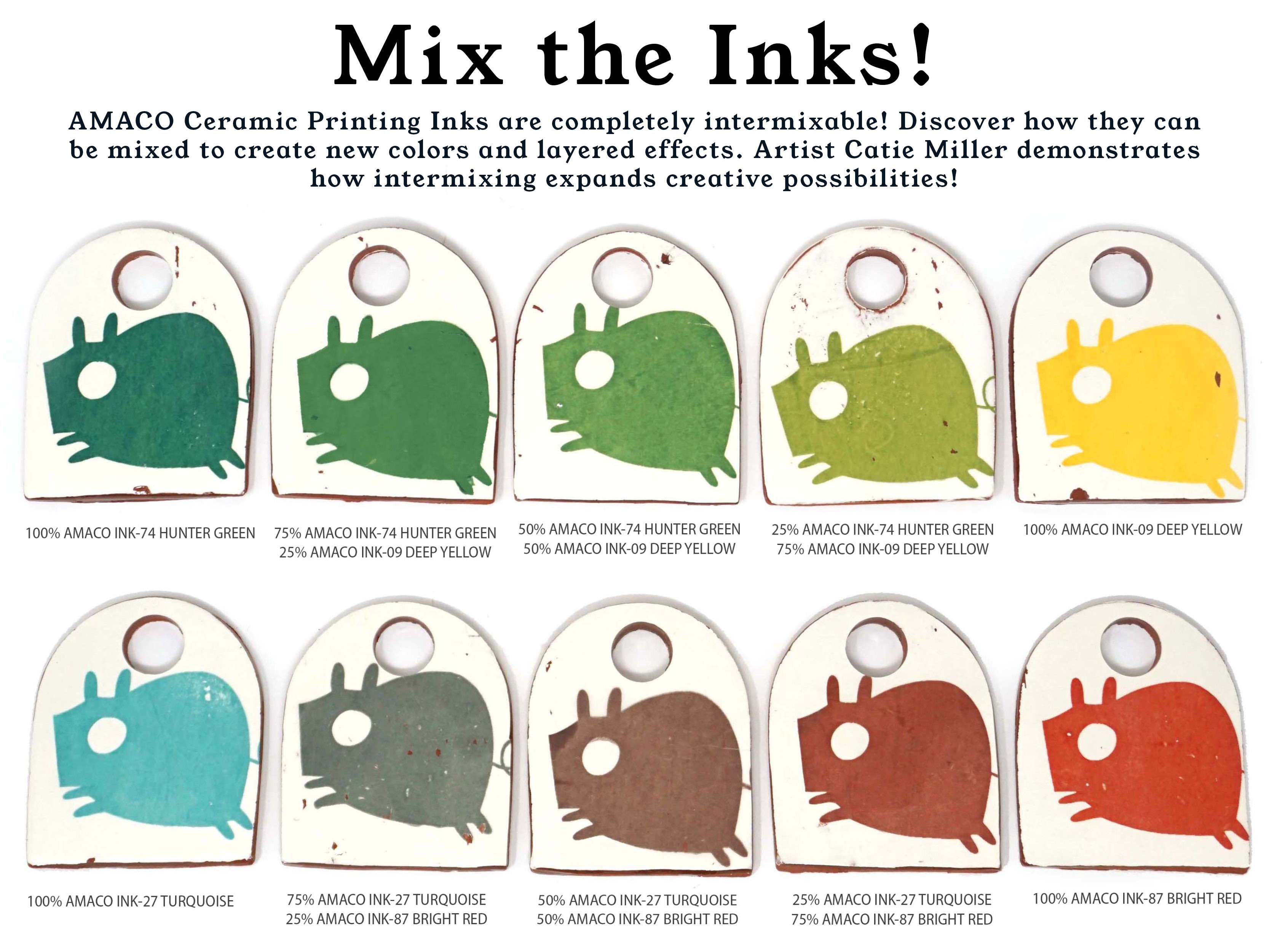 AMACO Ceramic Inks are printmaking inks designed for use on ceramics - great for screenprinting, craft foam printing, and monoprinting! A thin application yields best results. For use on greenware or bisque.
